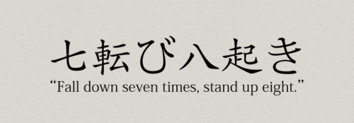 I think I realized that we can’t always be in a hurry and if we are, sometimes bad things can and will sometimes happen. But even when bad things do happen, we have to brush ourselves, get back up, and move on with life. I remembered the Japanese proverb: “Fall Down Seven Times, Stand up Eight.”
